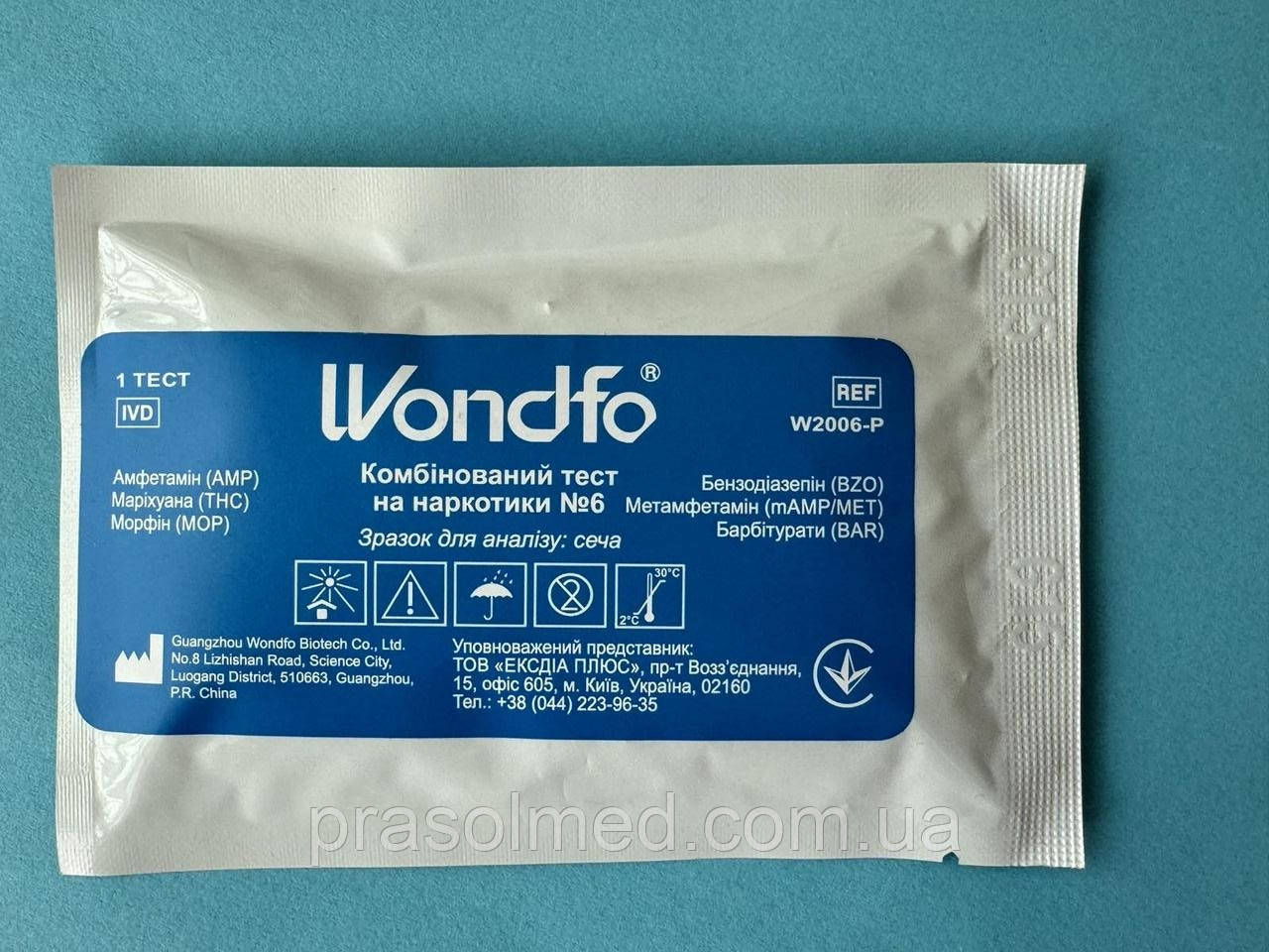 - Тест не призначений для кількісного визначення концентрації наркотичних речовин або рівня інтоксикації.